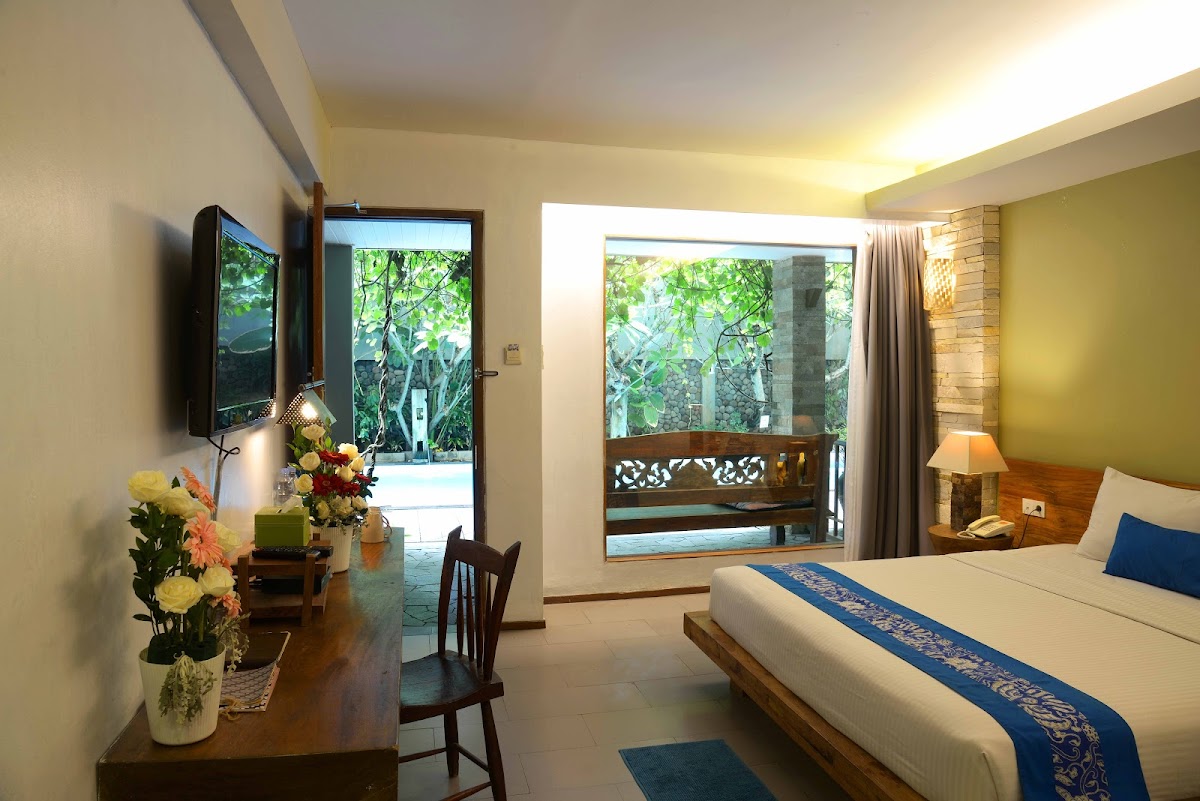 The first time we came, we were already captivated by the location. Greens everywhere, which I loved it. Our room was on the second floor, there was a balcony as a smoking area, perfect. Breakfast was good, but I think their restaurant menus are much better. I love their coffee. Just a little feedback: there are so many ants in the room and bathroom, please notice this, and make sure next time it wont happen again. The AC in our room was not cold enough, even when we tried to change the setting, it wouldn't work. The bathroom is small, and the hot water was good, but lots of ants in the bathroom. But overall, we loved our stay here. Definitely will come back.